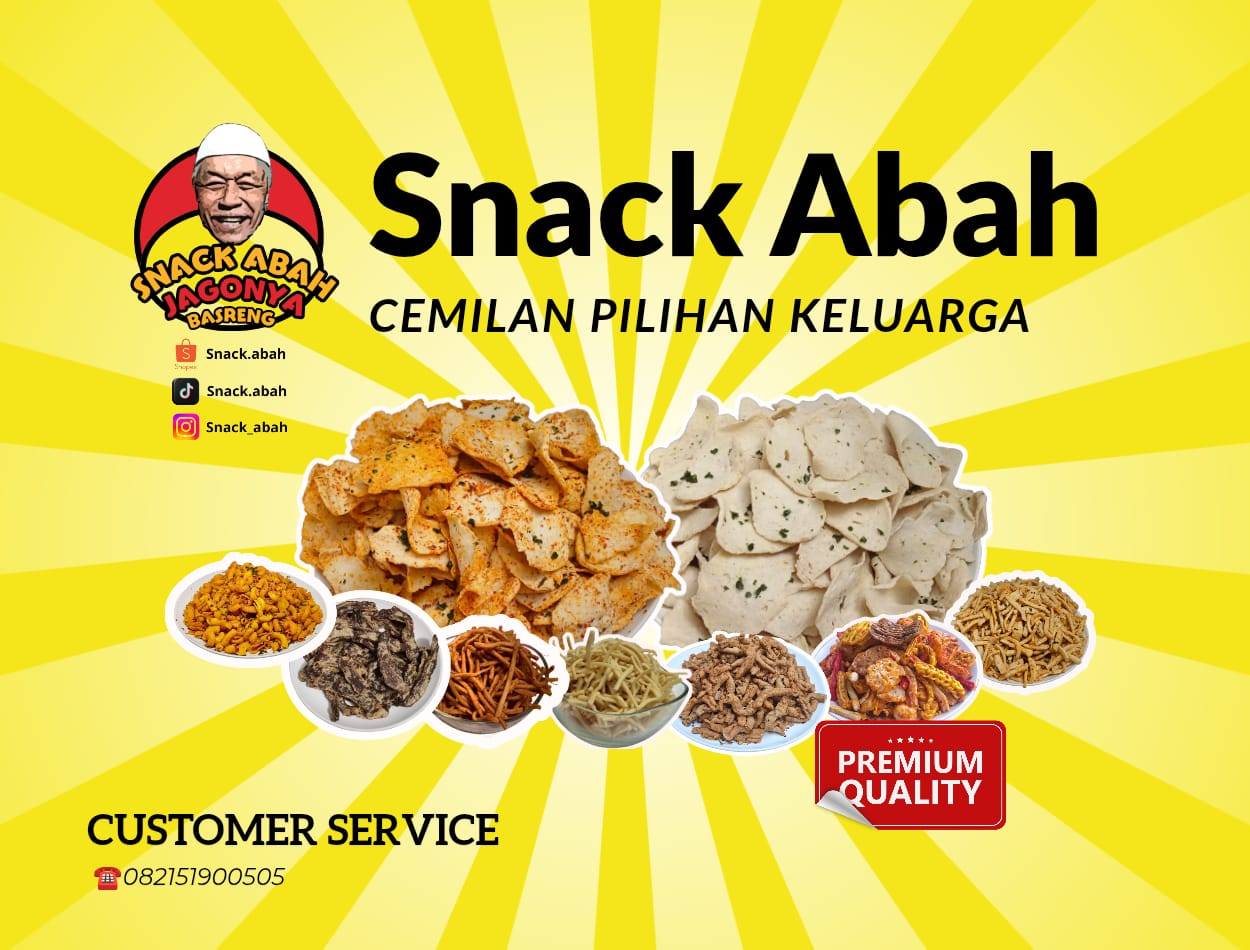 Cari Snack yang enak dan berkualitas untuk cemilan keluarga? Bekal traveling dan oleh - oleh? Atau Buat dijual lagi ? Kenalin Snack Abah Produsen Cemilan Peremium dengan bumbu Rempah alami. Menerima pembelian ecer dan grosir. Produknya enak, halal, terjangkau, pengiriman aman ke seluruh Indonesia dan Luar Negeri. Tunggu apalagi hubungi admin dan order produknya sekarang !